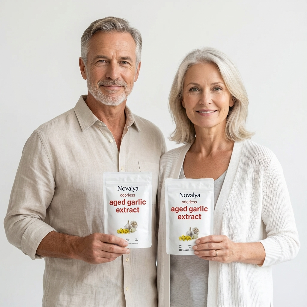 "Packed with naturally fermented SAC, Novalya aged garlic helps maintain healthy blood pressure, improves circulation, and boosts immune resilience — without garlic odor. A clean daily ritual for stronger living."
